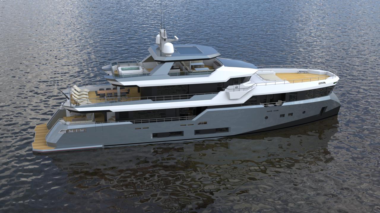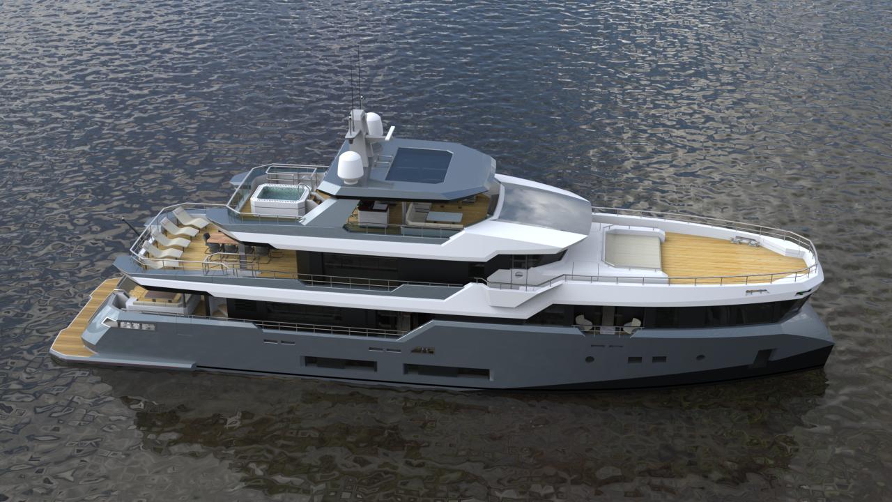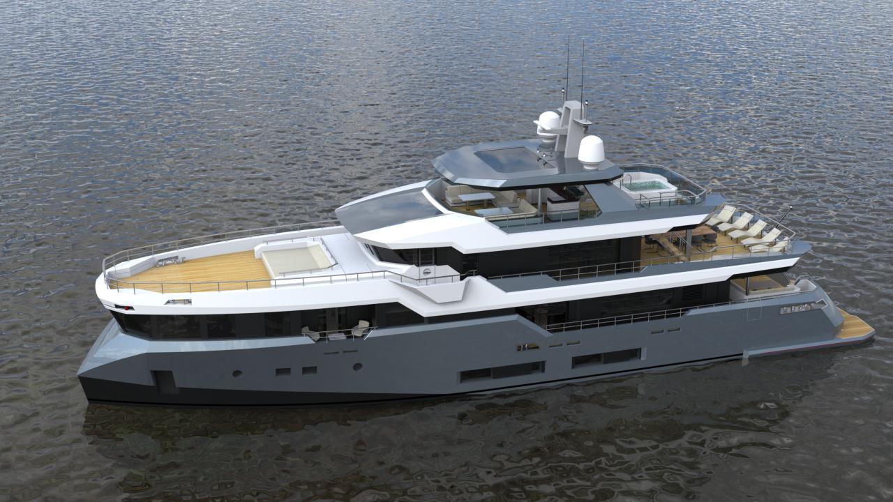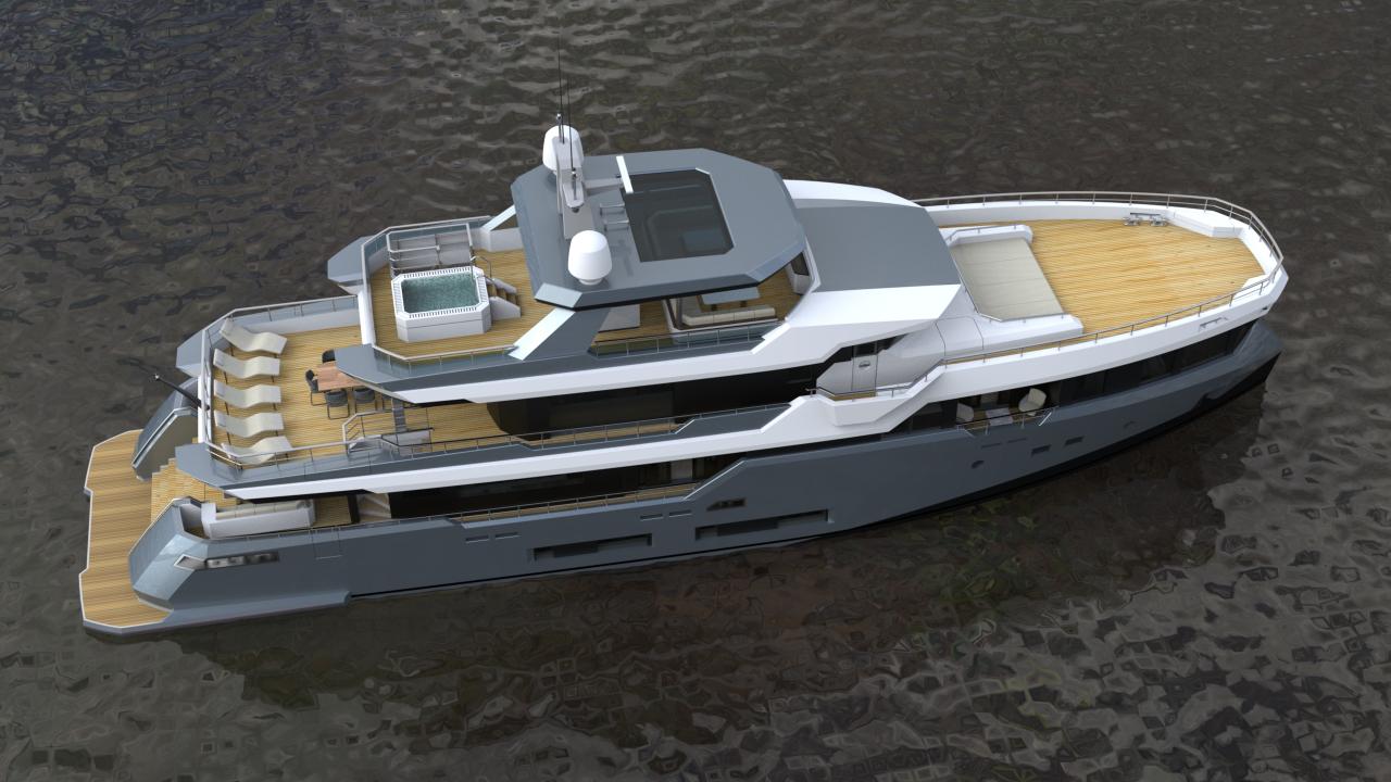 Thanks to this design, the boat owner is offered a forward-facing master cabin with a net usable area of 60 m2; and an uninterrupted 180° sea view.