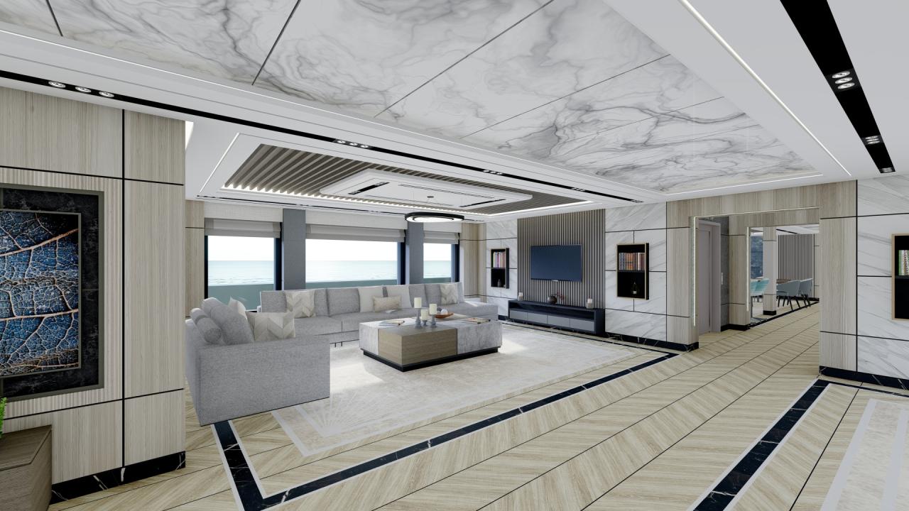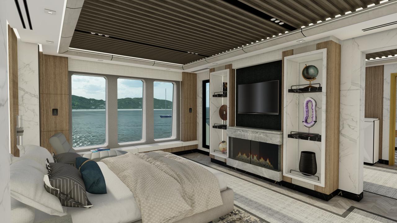 Despite its expedition-focused nature, the yacht offers generous interior volumes and expansive deck spaces, ensuring a high level of comfort for owners and guests. Large panoramic windows provide continuous visual connection with the surrounding environment, reinforcing the spirit of exploration.