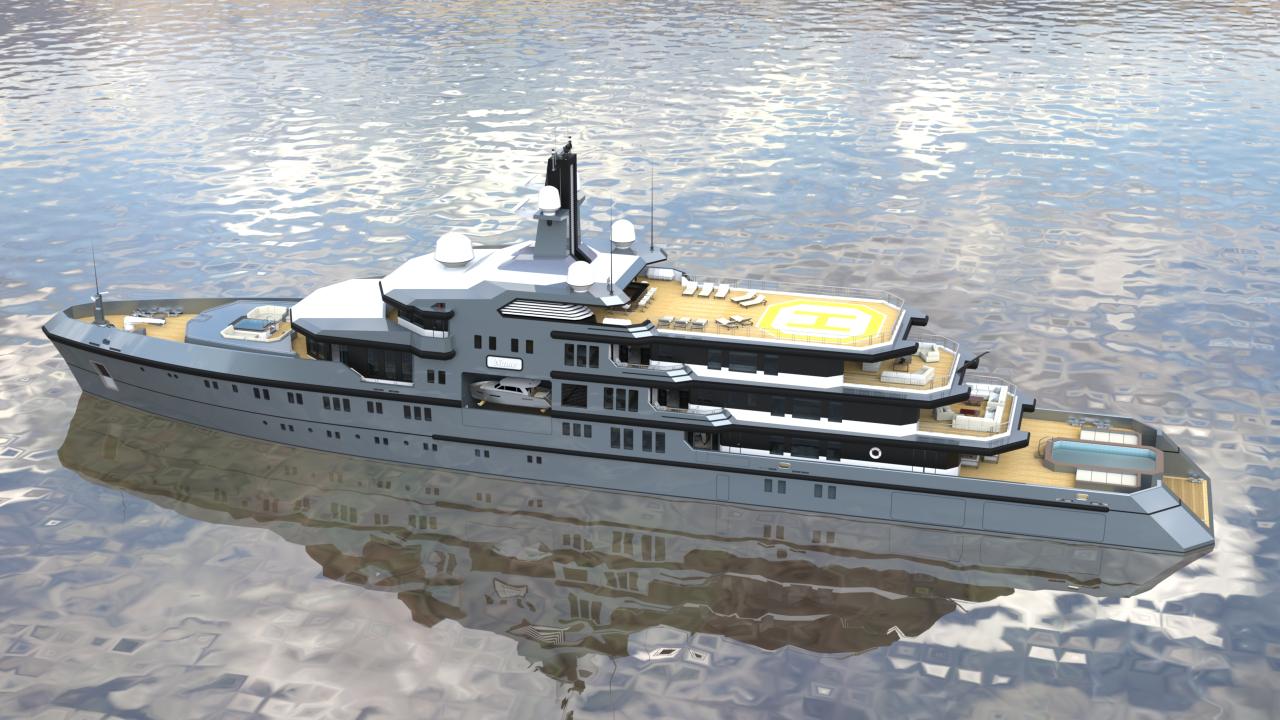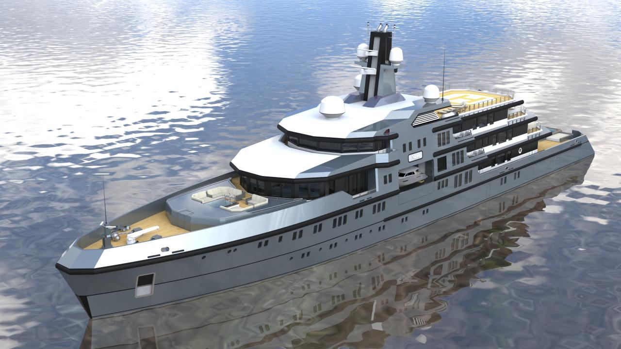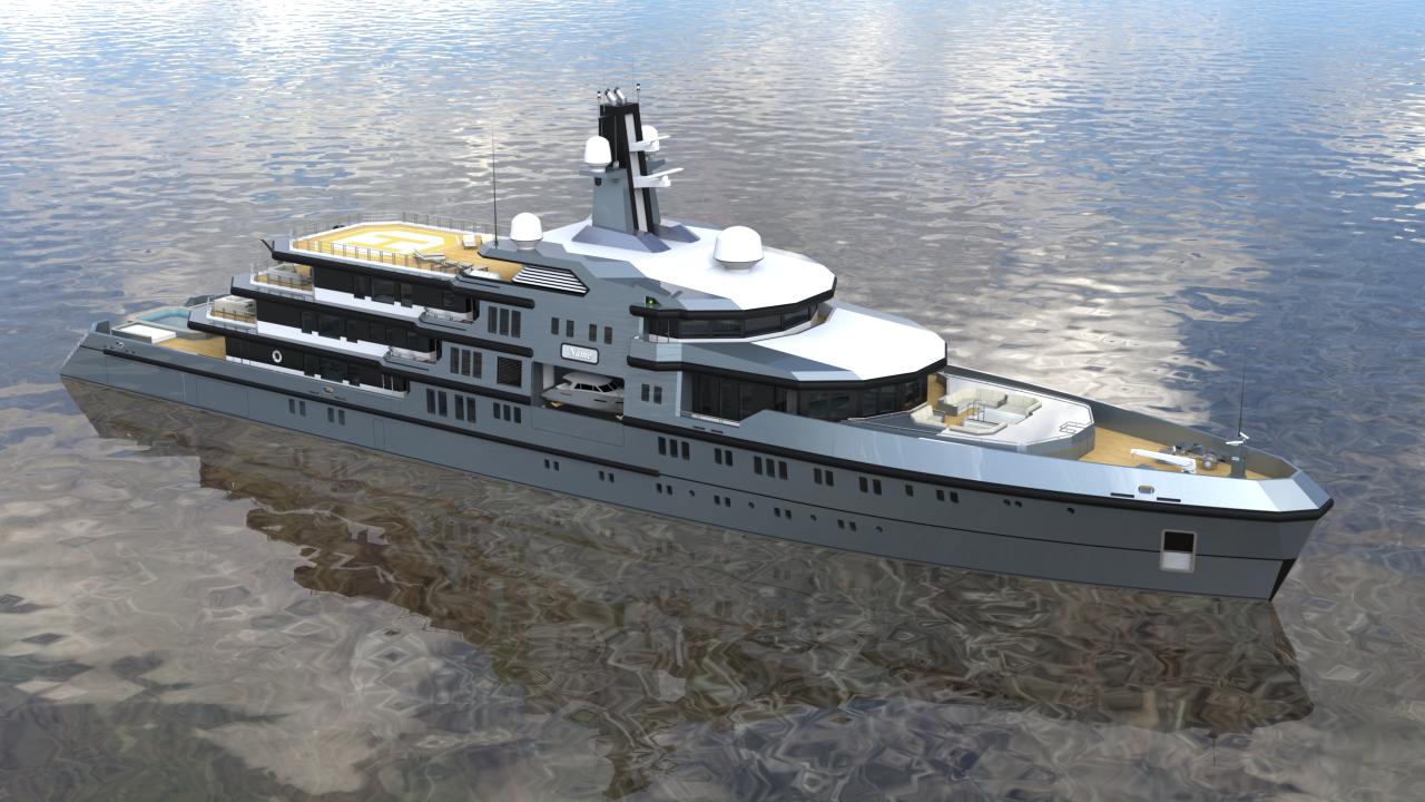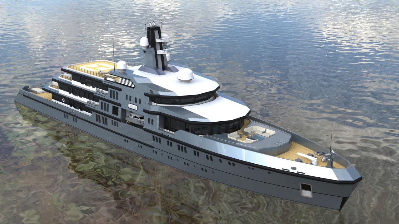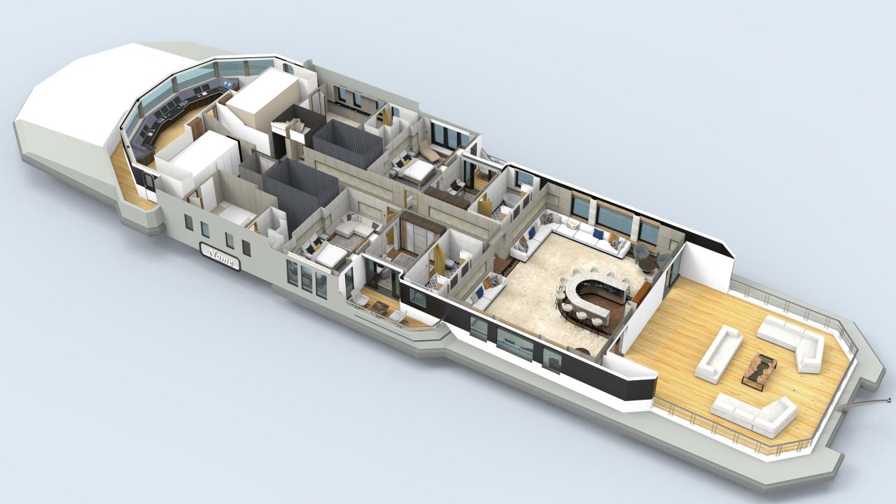 The design allows for flexible configurations, including dedicated areas for tenders, expedition equipment, helicopters, and scientific or exploration gear, without compromising guest accommodations or crew efficiency.
