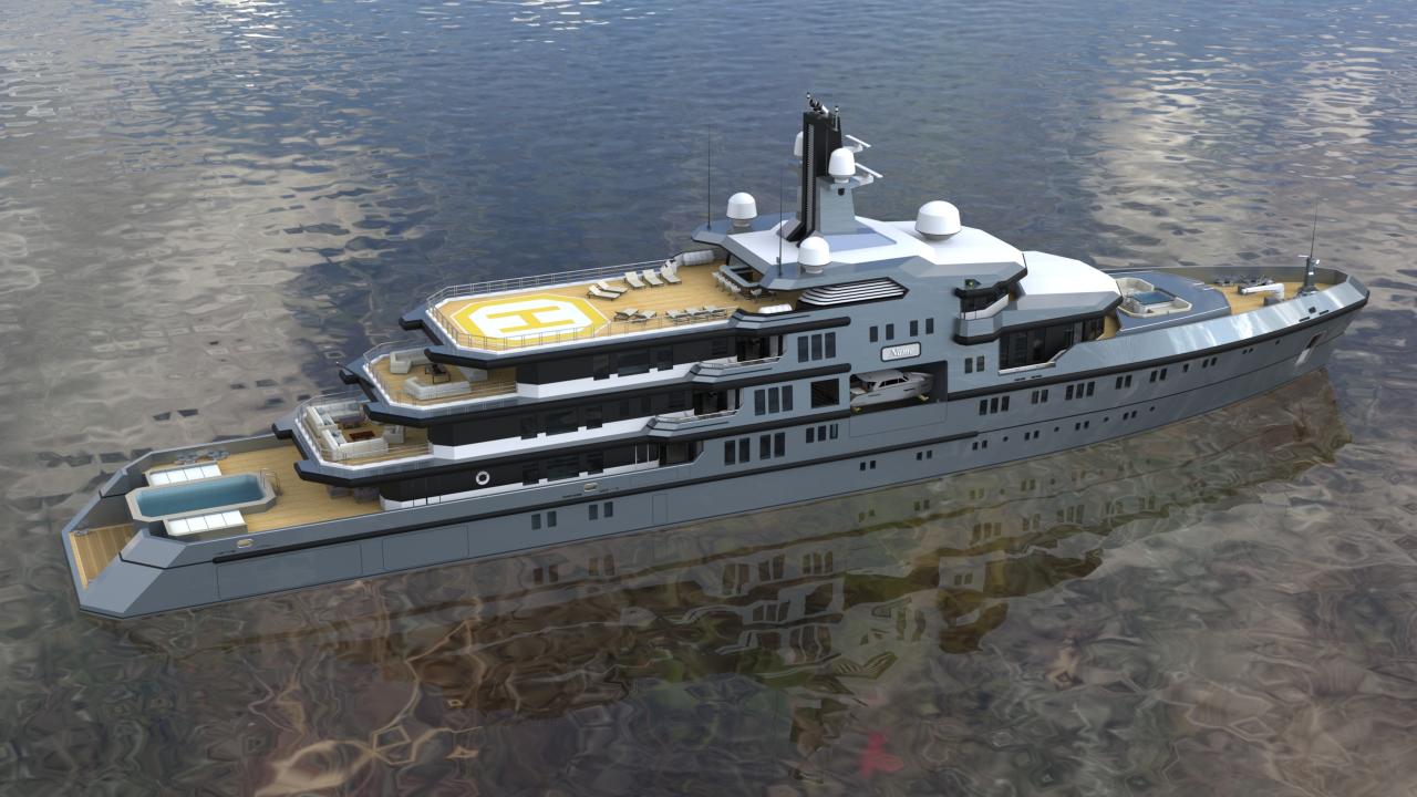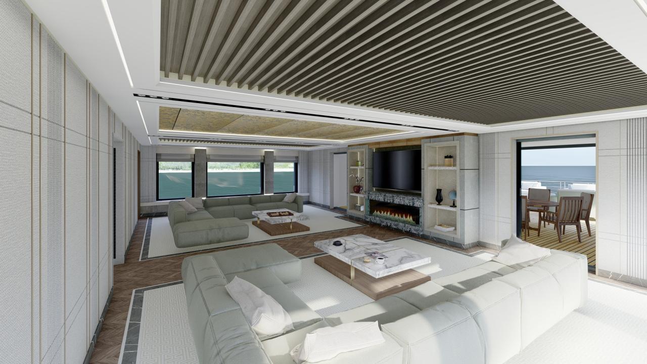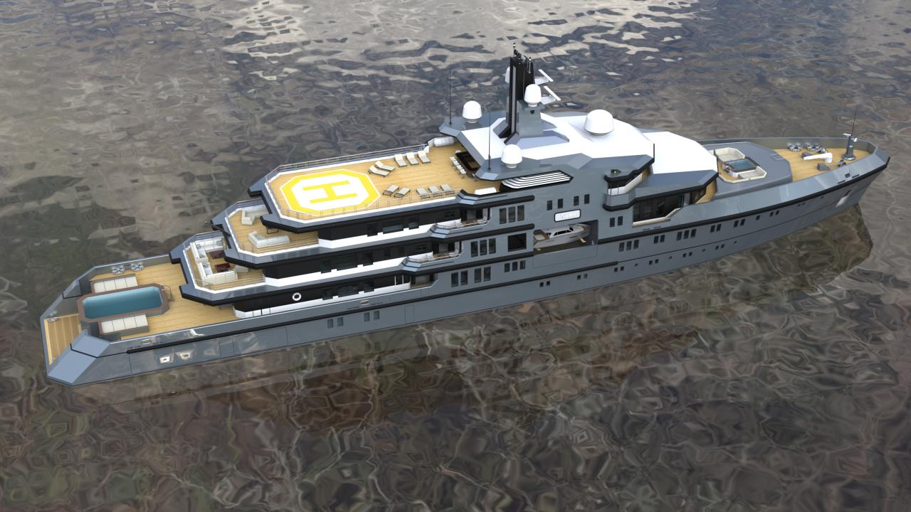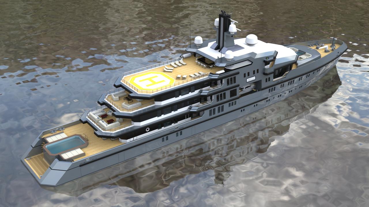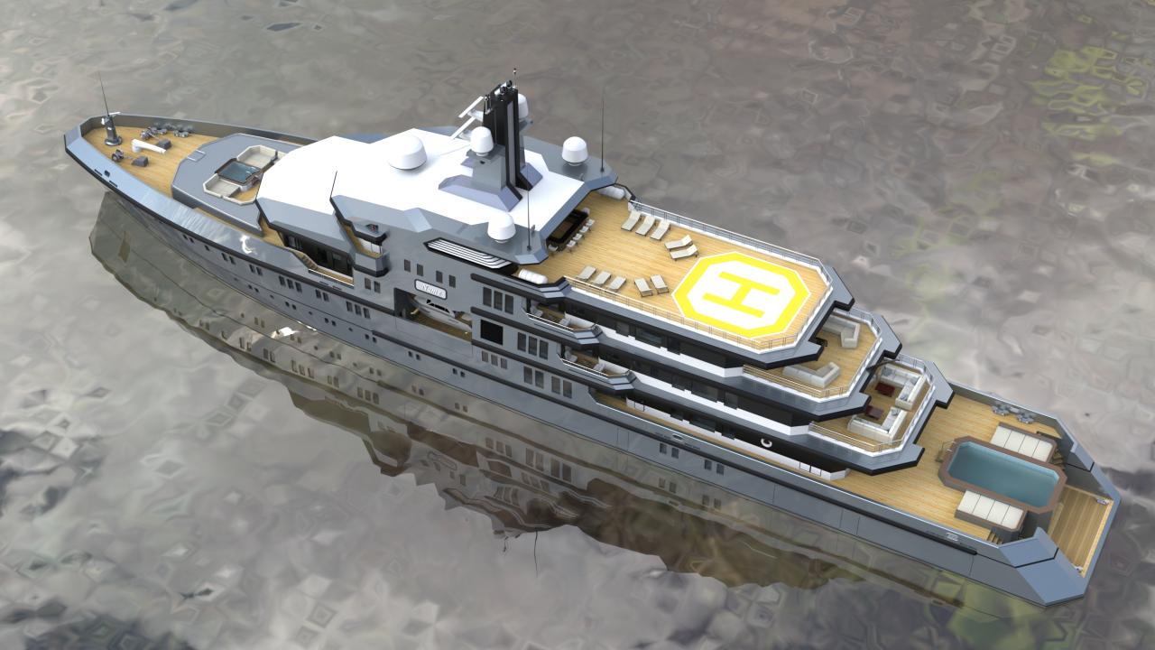 The design allows for flexible configurations, including dedicated areas for tenders, expedition equipment, helicopters, and scientific or exploration gear, without compromising guest accommodations or crew efficiency.